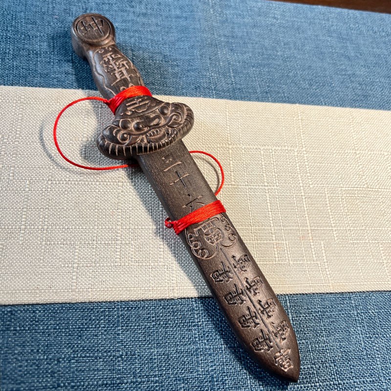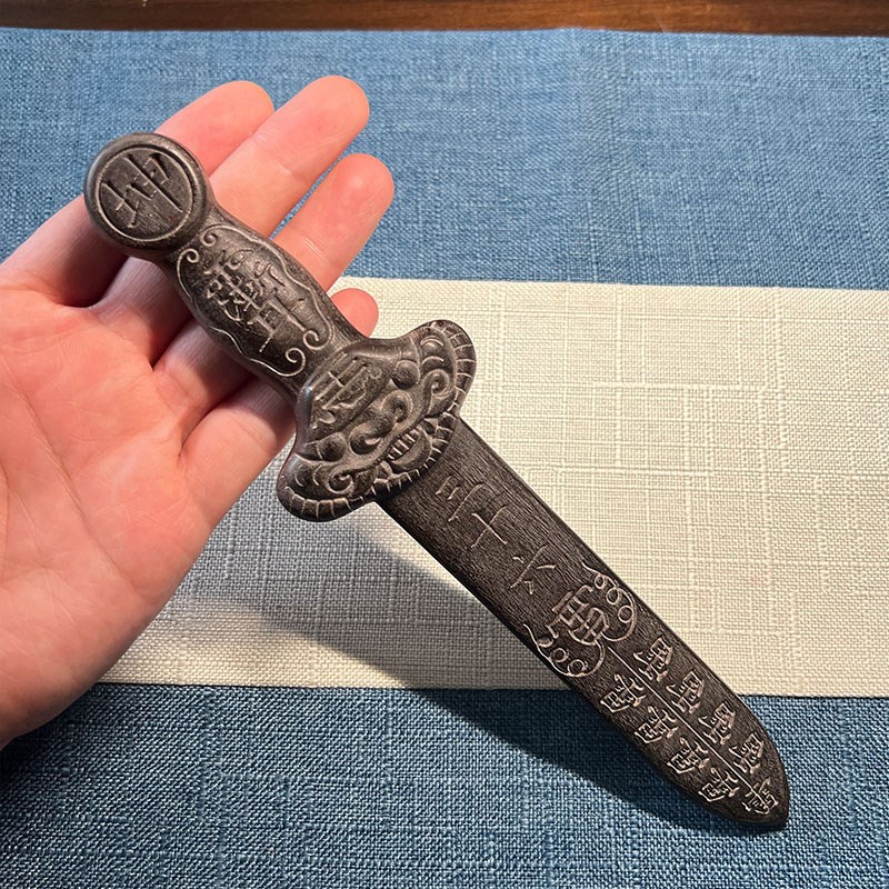 青蚨黄眉庵刻字黑桃木天罡三十六剑挂件摆件