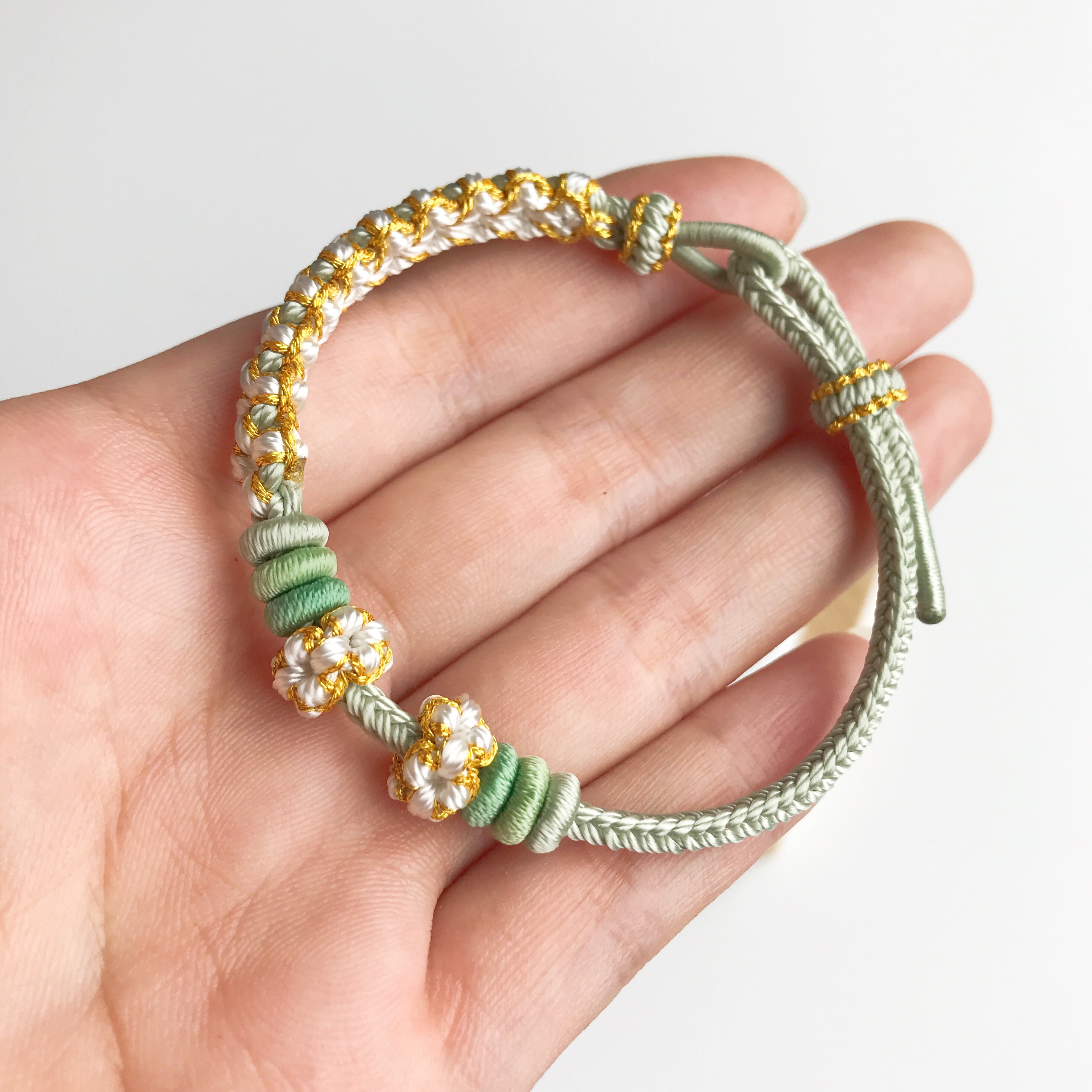 手工编织八股辫香芋紫白色桃花情侣闺蜜女生手绳可穿饰品黄金