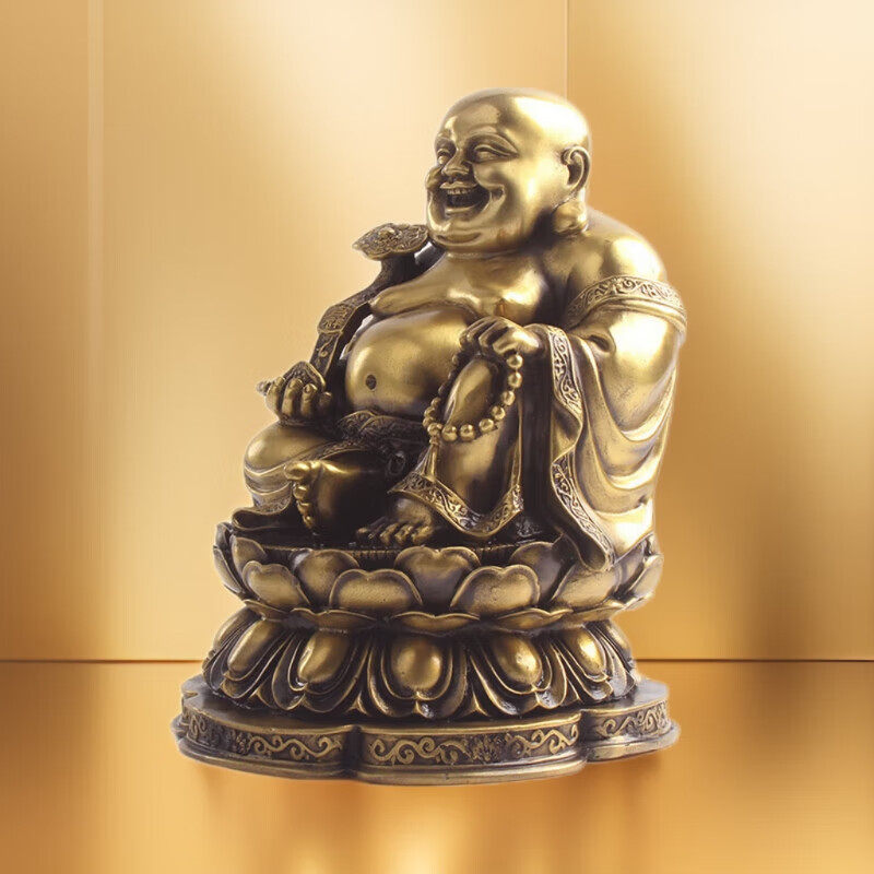 玄友 黄铜八方来财大肚弥勒佛客厅佛像笑面佛摆件供奉笑佛铜像