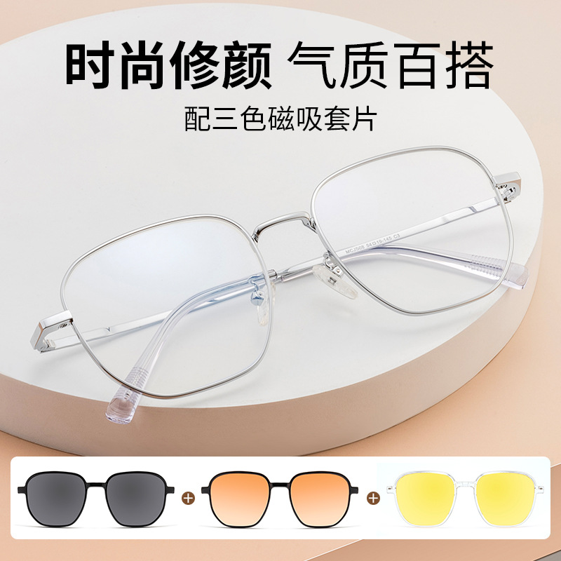 合金近视眼镜款磁吸套镜四合一日夜两用开车近视可配度数防蓝光