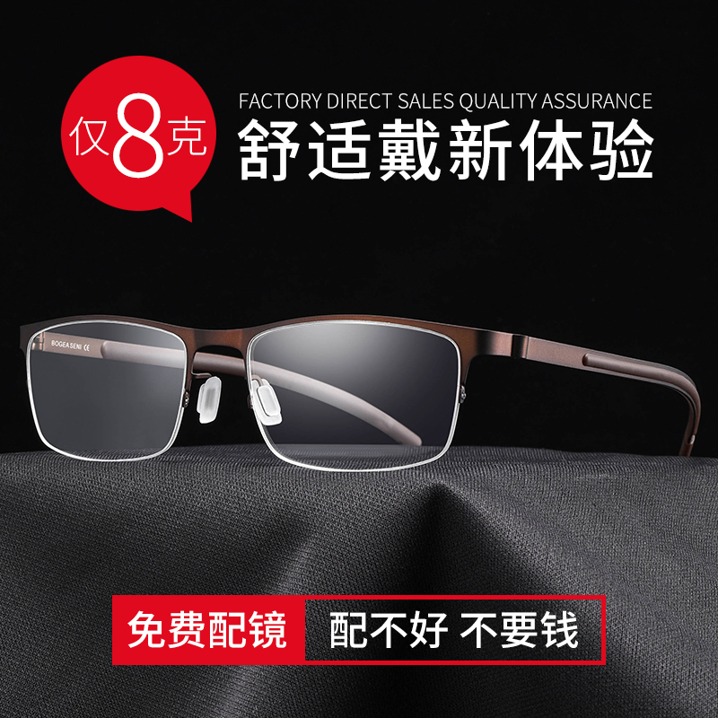 超轻钛合金近视眼镜男士大脸宽防蓝光眼睛框架可配度数100度200度