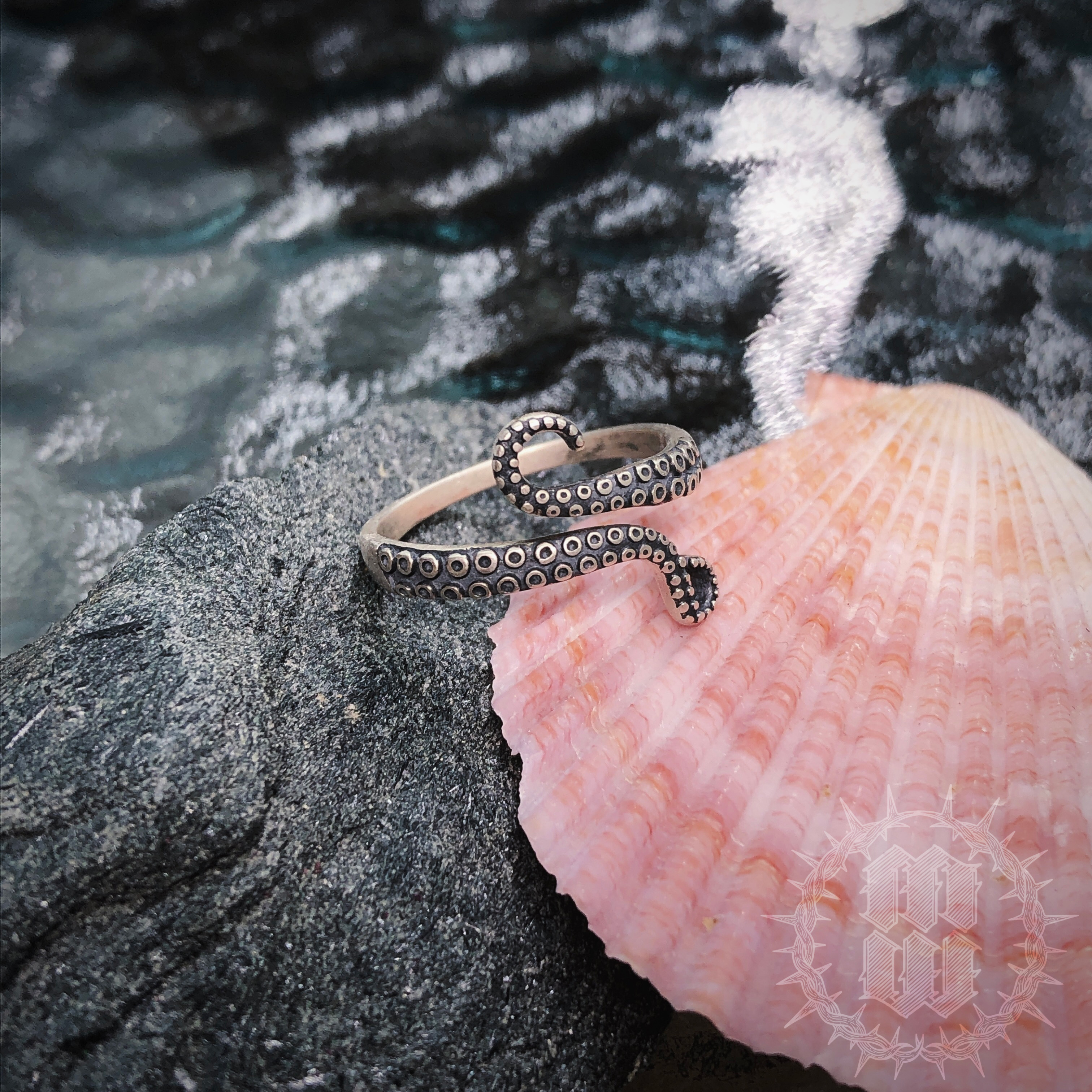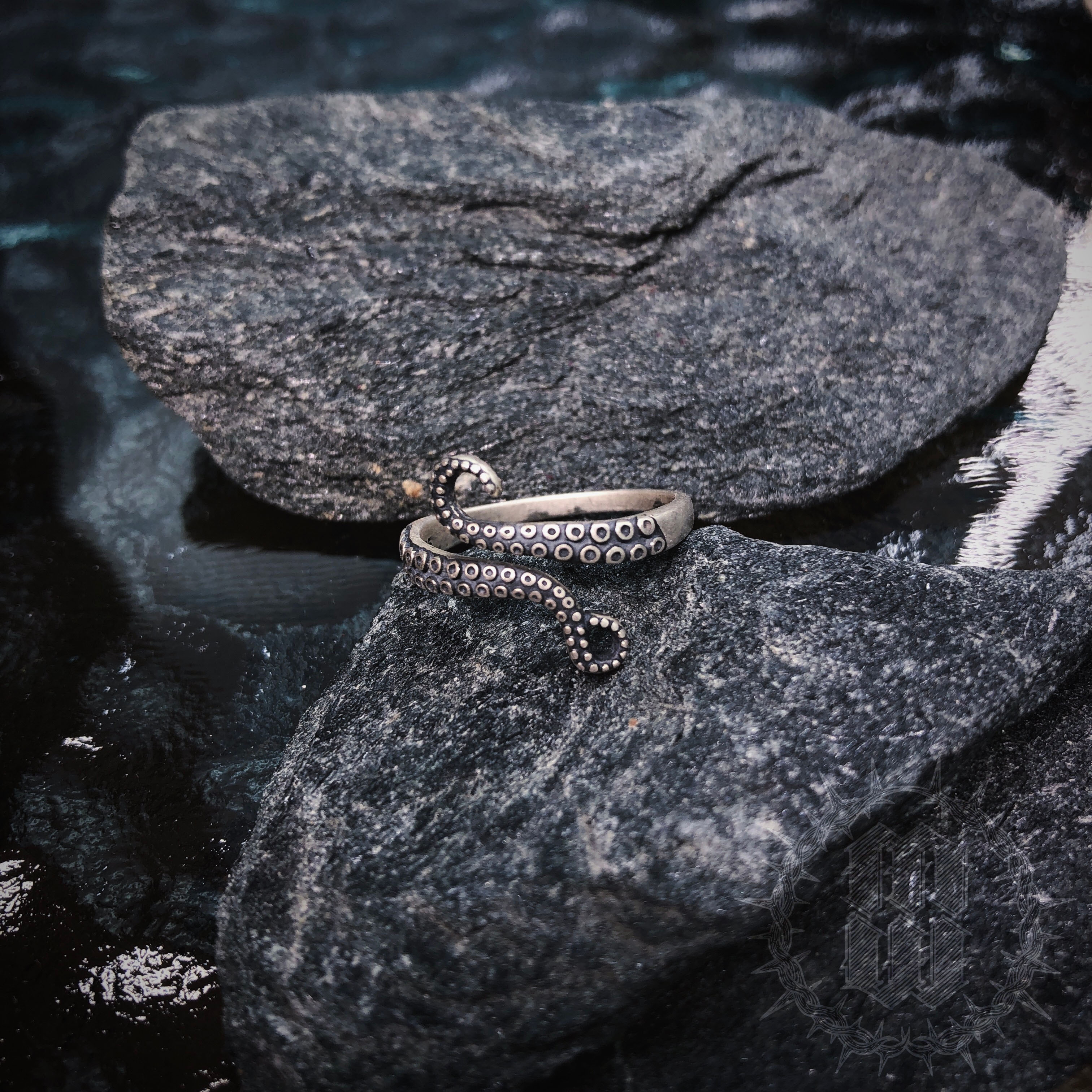 【R'lyeh】触手海岸 克苏鲁崇拜做旧章鱼吸盘纯银开口戒指 925银