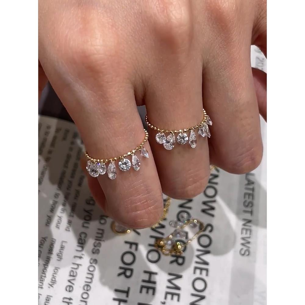 水滴流苏串珠戒指女小众设计轻奢高级感指环2025新款爆款食指戒