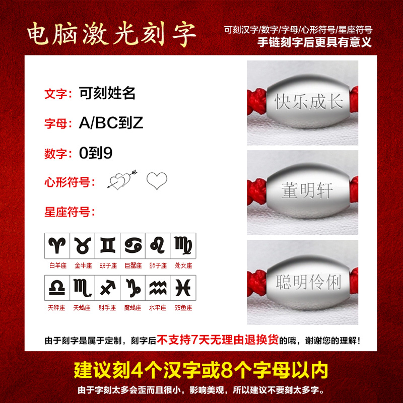 宝宝红绳手链女925纯银编织绳刻字满月手镯生肖虎年手绳小孩儿童
