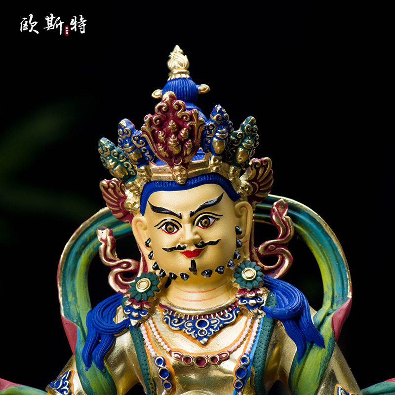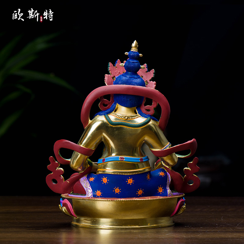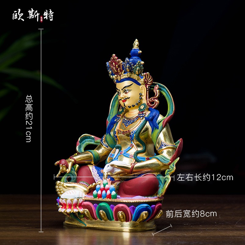 黄财神铜像 家居摆件台湾铜镀金彩绘居家中式桌面藏巴拉 10寸