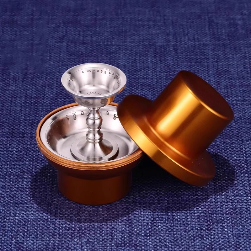 迷你便携不锈钢八吉祥护法杯密宗供奉家用供酒水杯护法杯供奉摆件