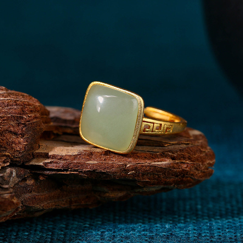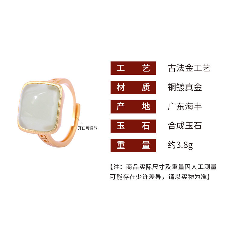 国潮气质复古法镀金工艺仿和田玉方糖戒指宫廷风指环妈妈款手饰品