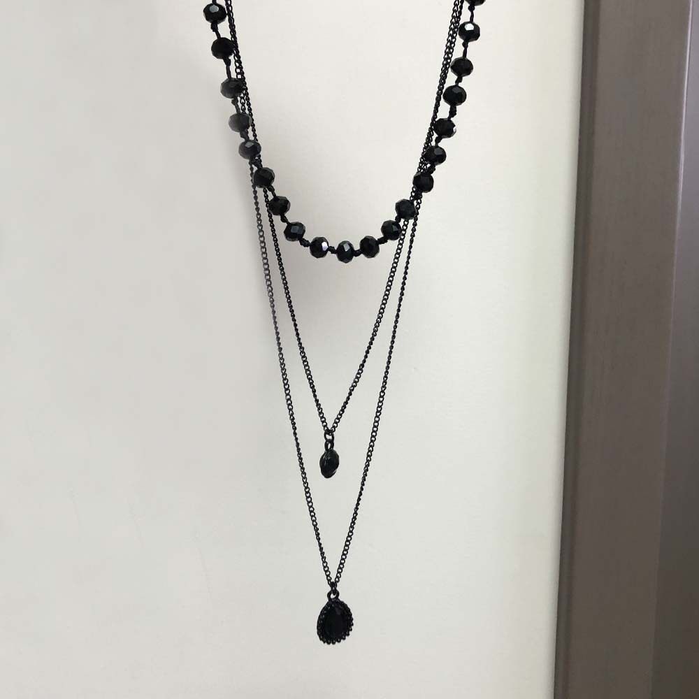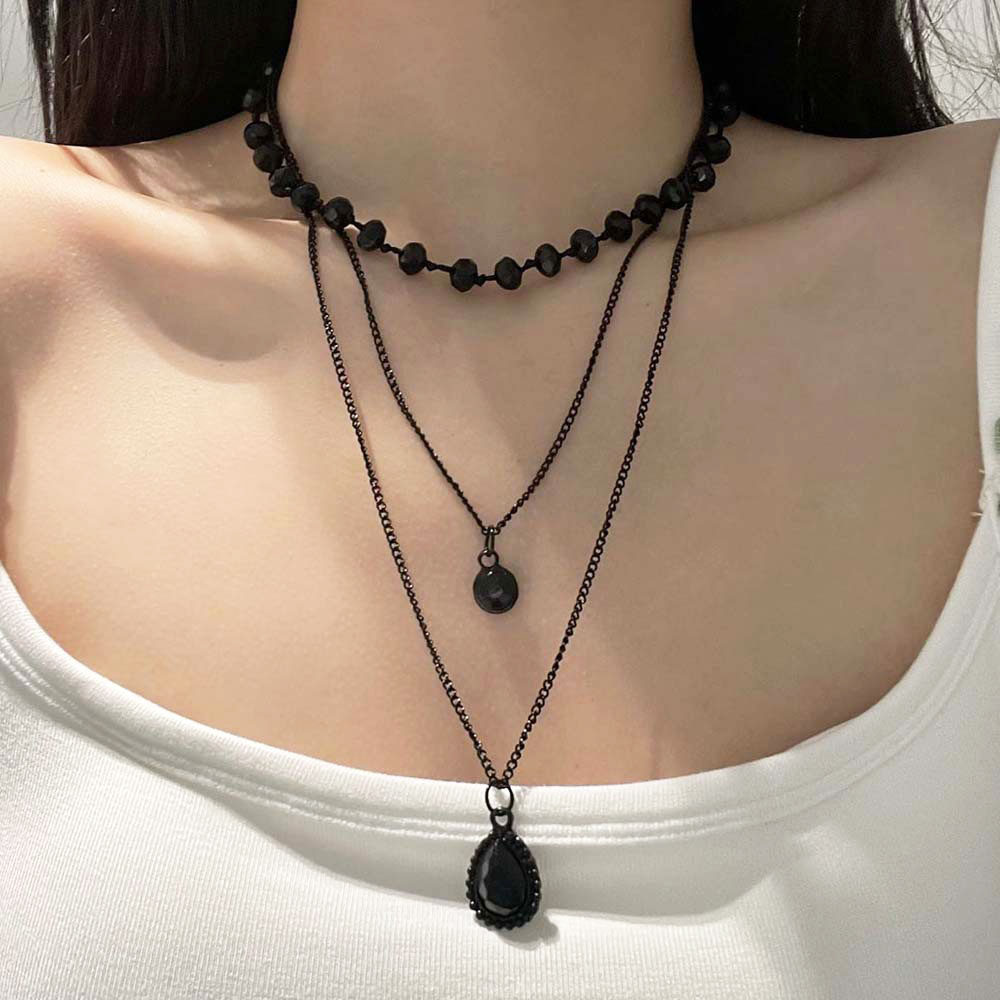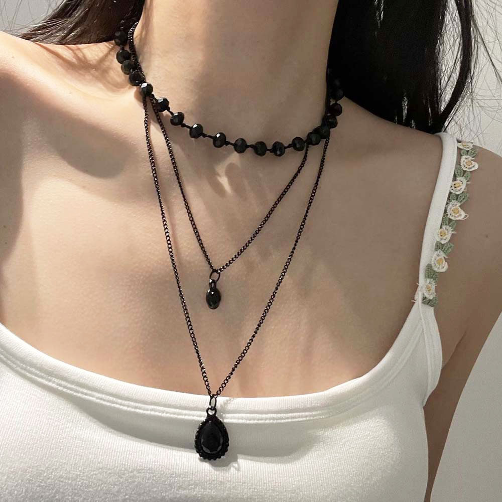 黑色水滴吊坠水晶串珠项链女多层叠戴锁骨链小众毛衣链锁骨链颈链