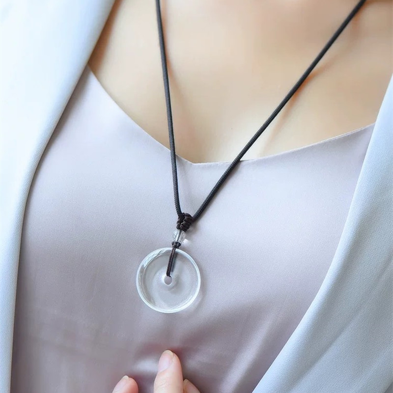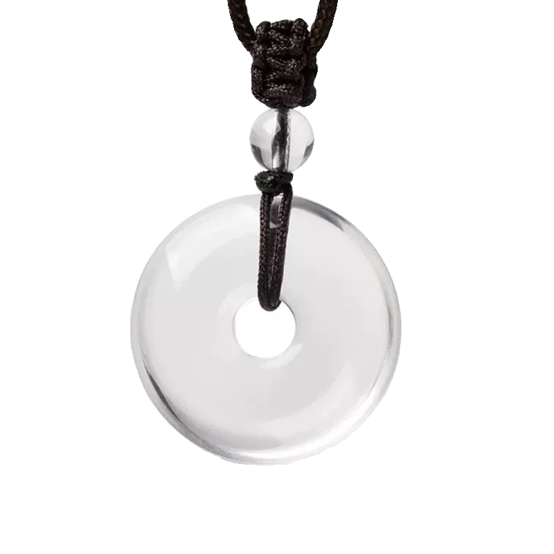 8A级白水晶平安扣吊坠冰种白水晶护身小挂件白色透明原石项链男女