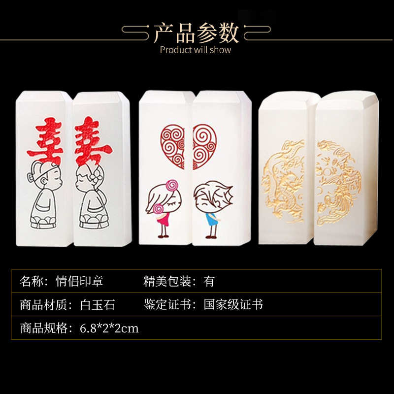 雕刻印章婚庆玉器雕刻摆件商务玉石情侣对章印章创意供应礼品玉石