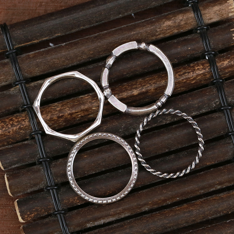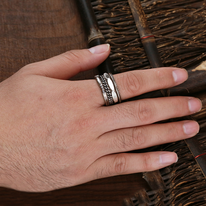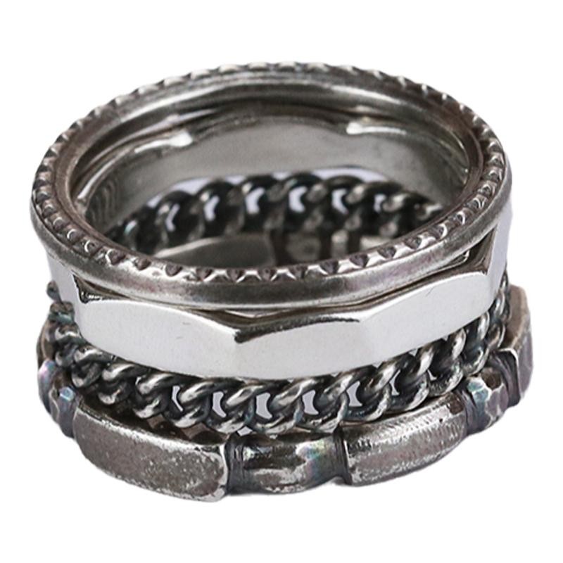 牛钝精工werkstatt munchen四环组合戒指925纯银手工做旧锯齿链条