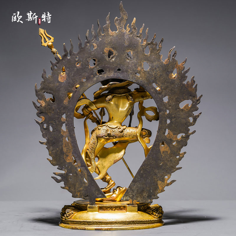欧斯特《狮面空行母铜像》复古鎏金手工錾刻尼泊尔工艺雕像摆件