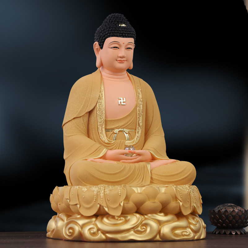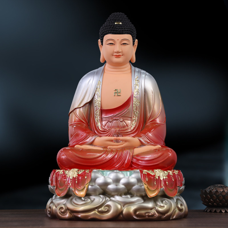 居家供奉鎏金如来佛祖红衣阿弥陀佛铜彩三宝佛神像沙金药师佛佛像