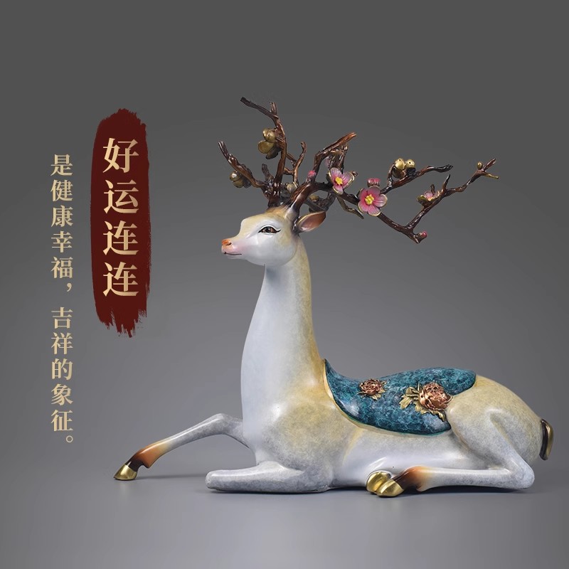 威弗列德全铜梅花鹿摆件一对福鹿客厅酒柜电视柜装饰乔迁新居礼品