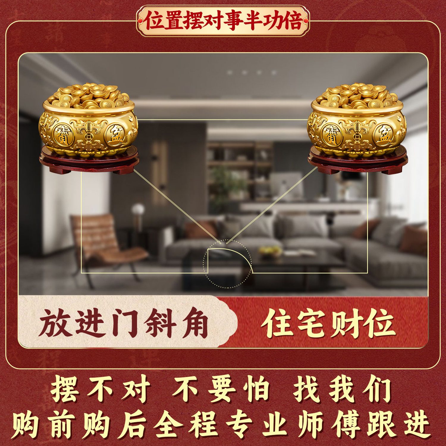 金元宝招财摆件大号沙金实心铜元宝聚宝盆招财聚财百福缸桌面摆件
