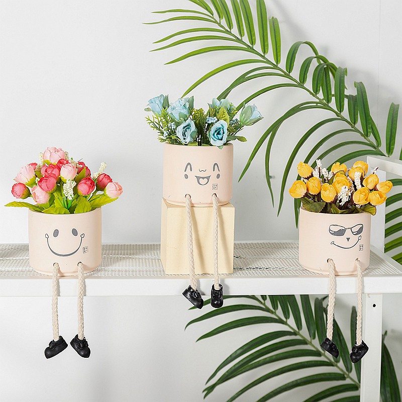 ins吊脚娃娃插花仿真花绿植盆栽客厅桌面装饰小摆件创意家居饰