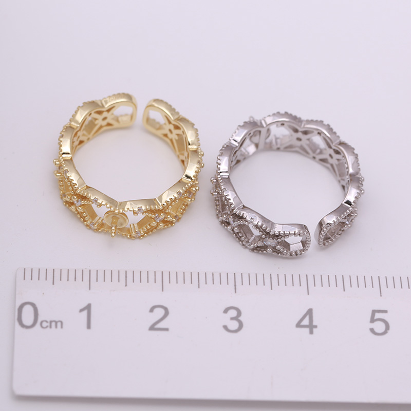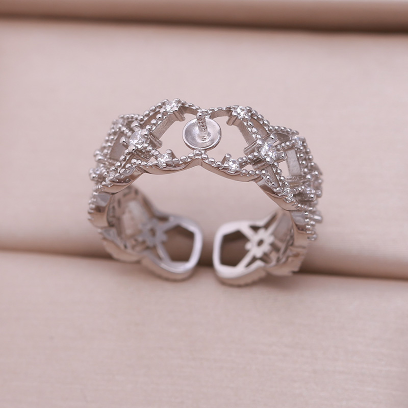 s925纯银戒指环 银饰蕾丝可调节珍珠戒指托 DIY手工制作银配件