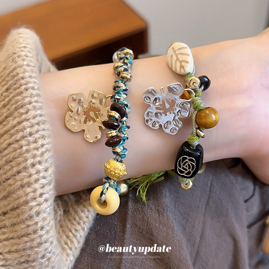 复古手工编织花朵手链女小众设计感多用钥匙扣民族风串珠包挂件潮