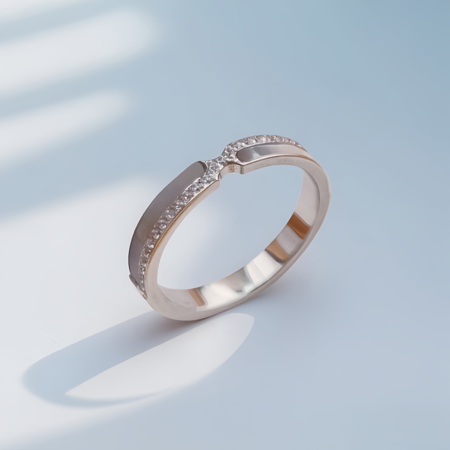 轻奢闪钻贝壳叠戴戒指女ins小众设计感指环18k钛钢简约不掉色饰品