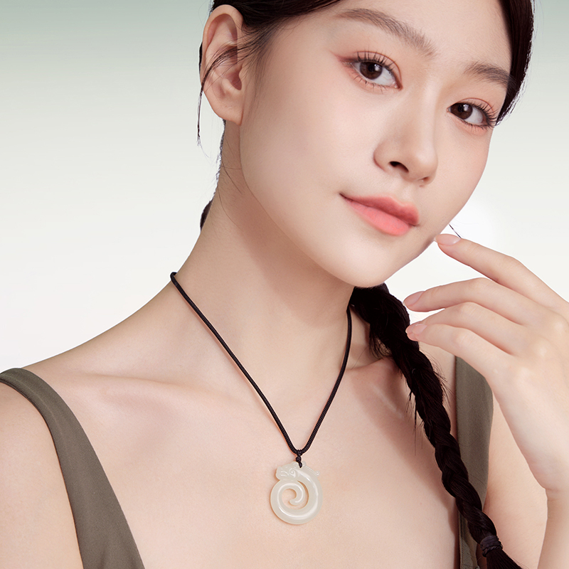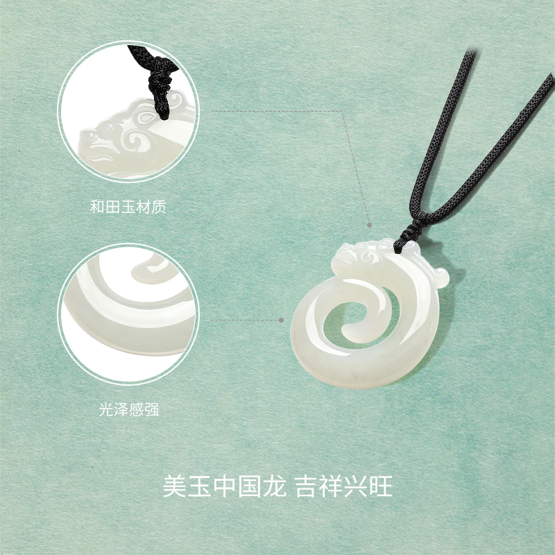 周六福和田玉吊坠男女如意龙环玉坠白玉石挂件官方正品圣诞礼物