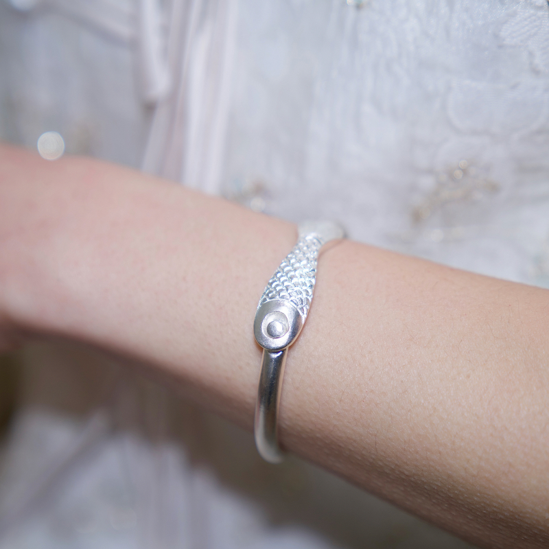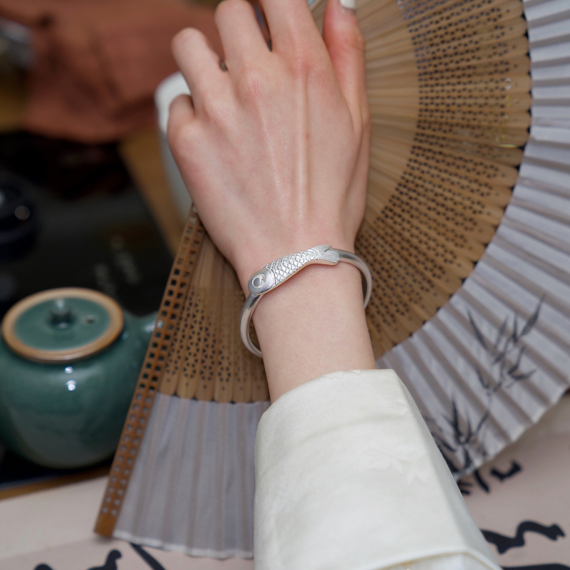 多宝鱼原创手工银手镯999纯银手镯男女儿童银饰足银镯子亲子款