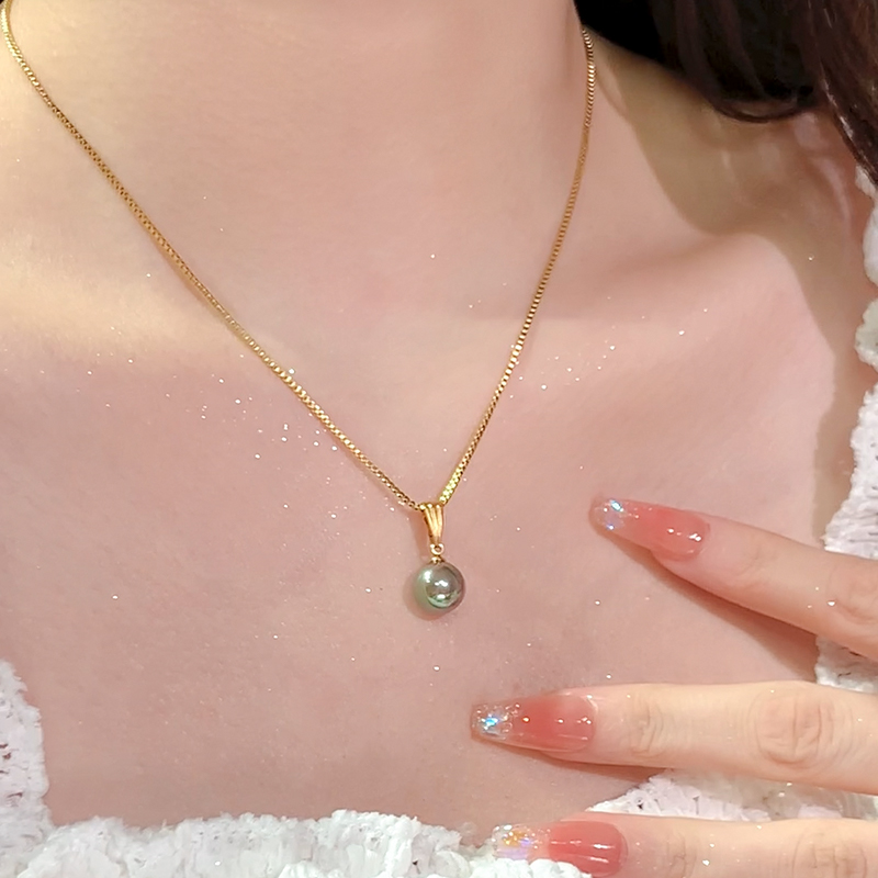 一颗白珍珠项链轻奢小众钛钢项链女款锁骨链粉黑珍珠颈链吊坠首饰