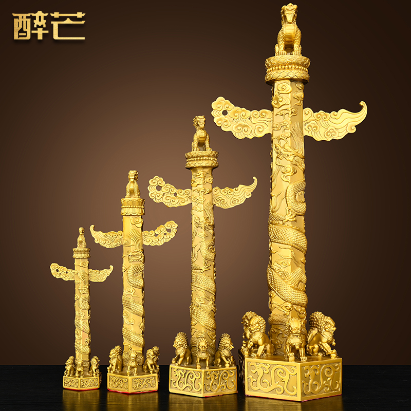 铜华表柱摆件九龙柱盘龙柱流云龙中华柱家居玄关客厅装饰工艺品纯