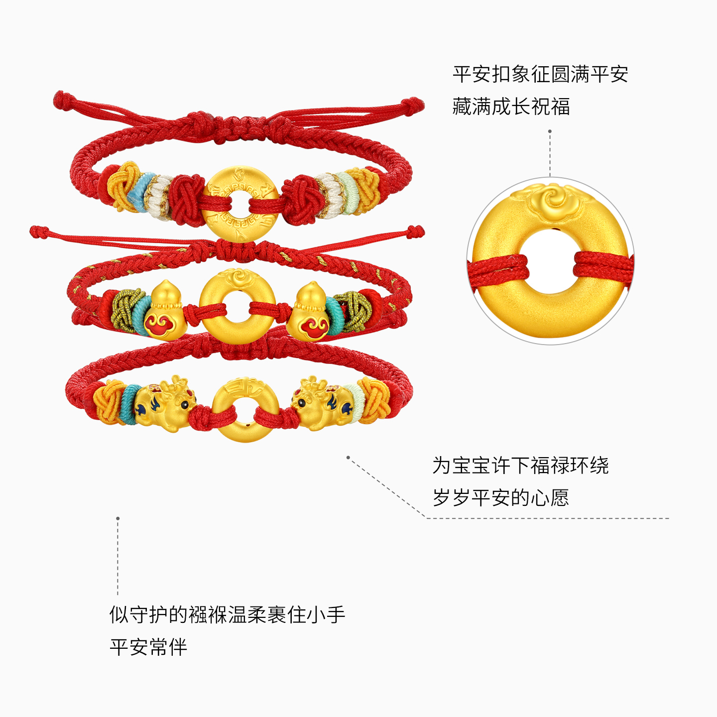 潮宏基好事发生宝护平安扣葫芦黄金手链5D硬金足金手绳纪念礼物