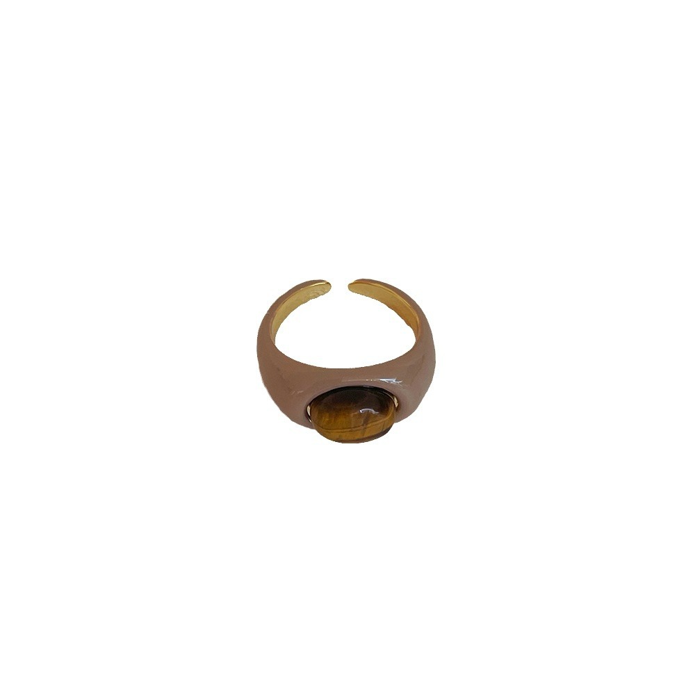 奶茶色滴油虎眼石开口戒指女小众设计感简约个性时尚百搭指环戒子