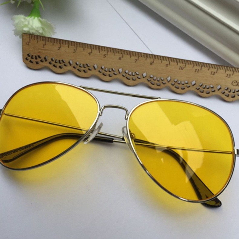 日本品质新款复古韩版潮人太阳镜金属飞行经典墨镜夜视眼镜黄色透