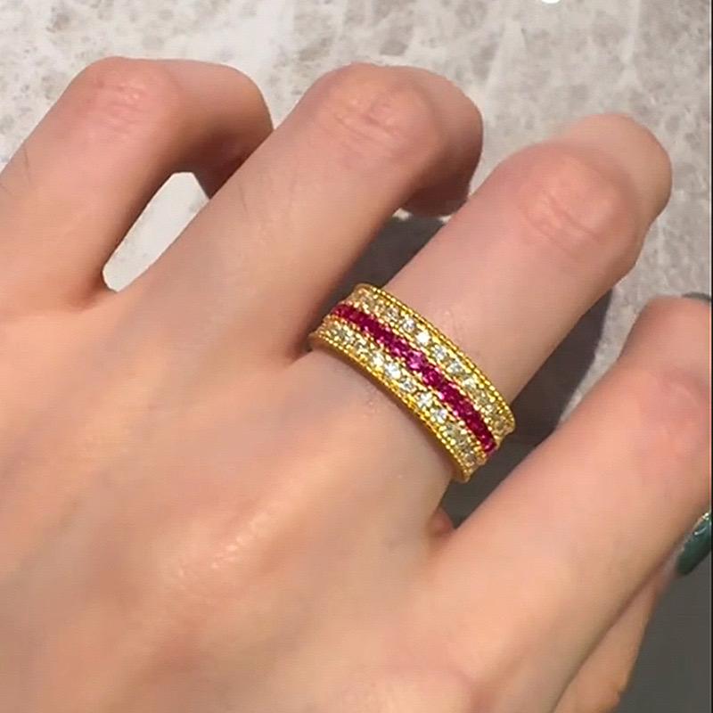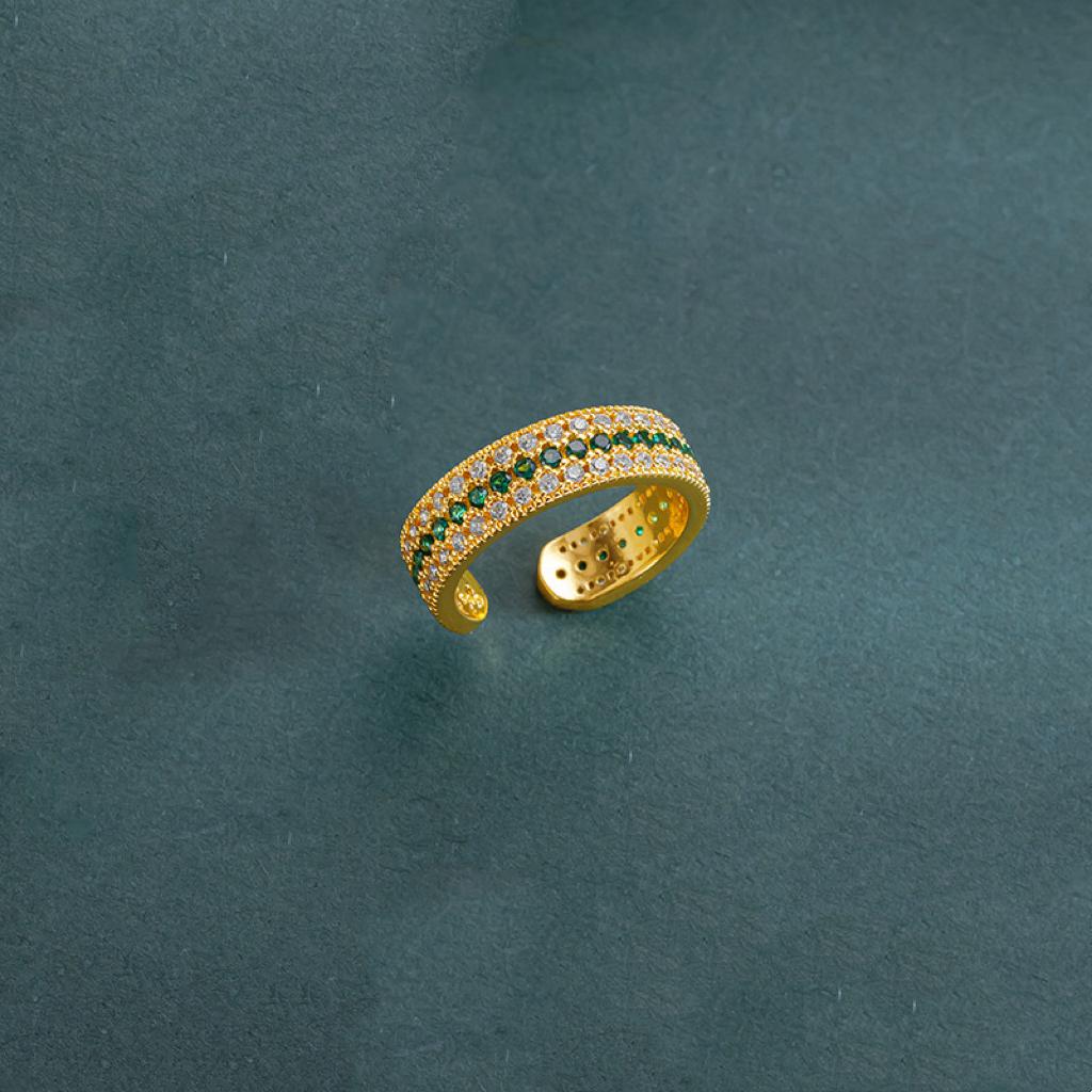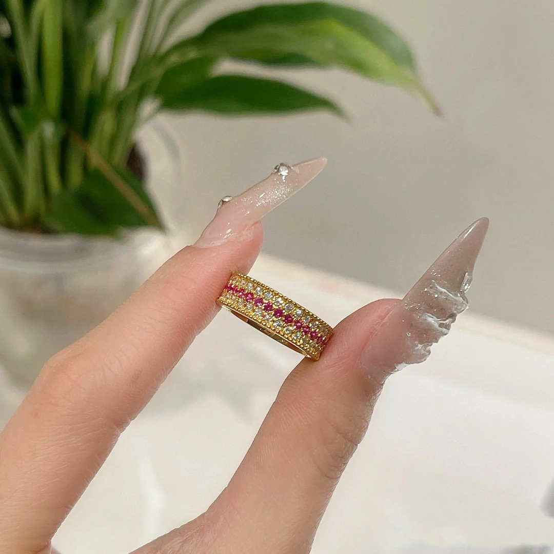 满天星闪耀满圈镶钻戒指红绿宝开口沙金三排指环新中式古法轻奢