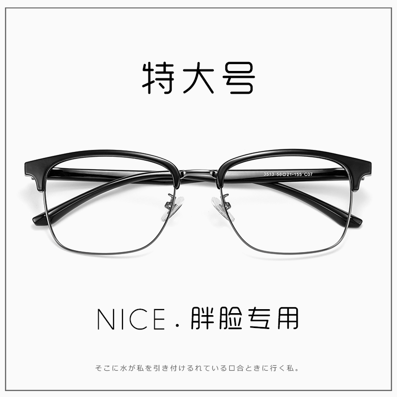 大框眼镜架男超大特大号眉毛架方框半框特大框加宽脸眼镜胖脸大脸