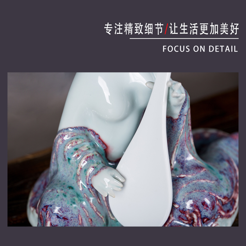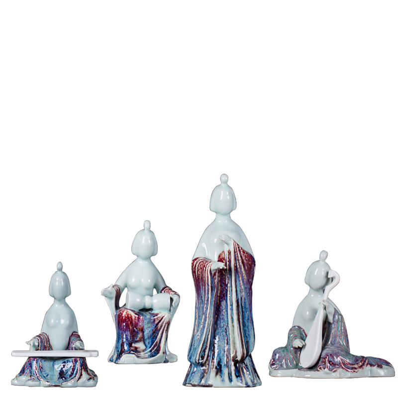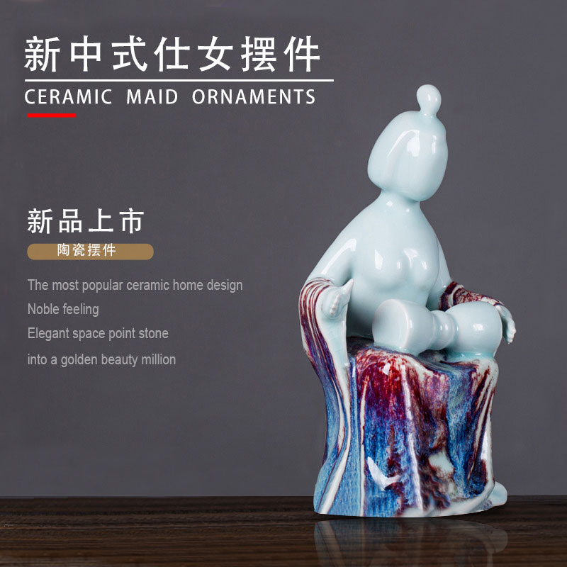 抚琴侍女摆件陶瓷艺术品古代仕女立体摆件景德镇人物瓷客厅摆件