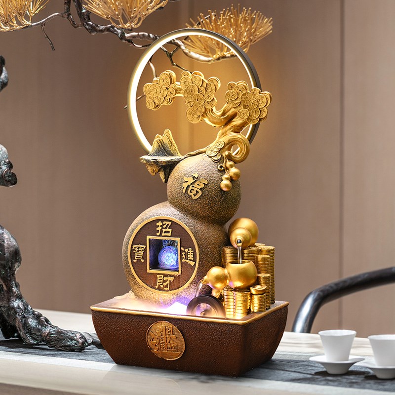 招财风水轮流水摆件循环水客厅桌面葫芦水景装饰R前台开店开业礼