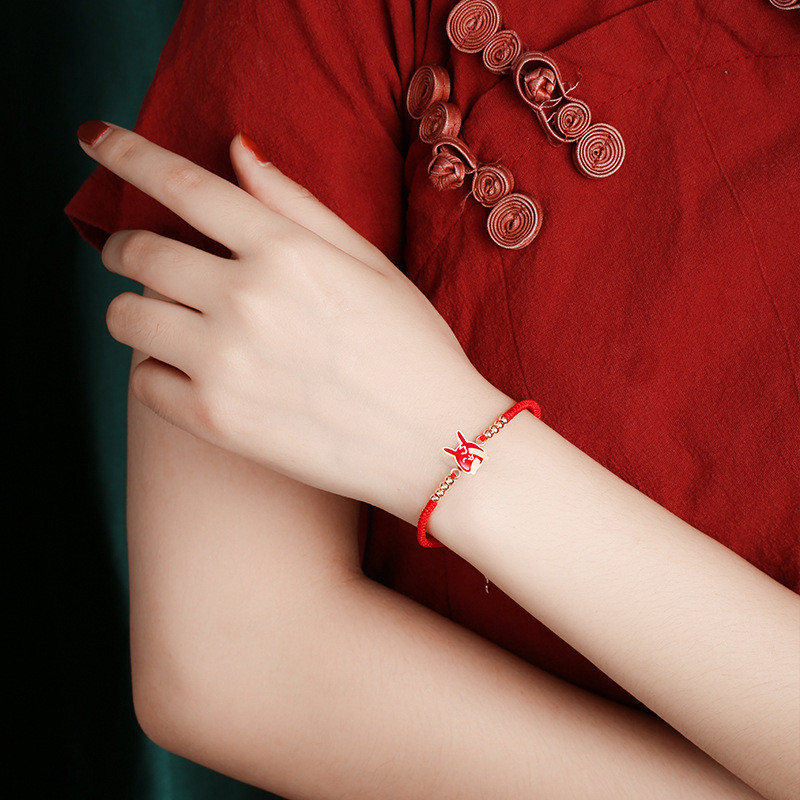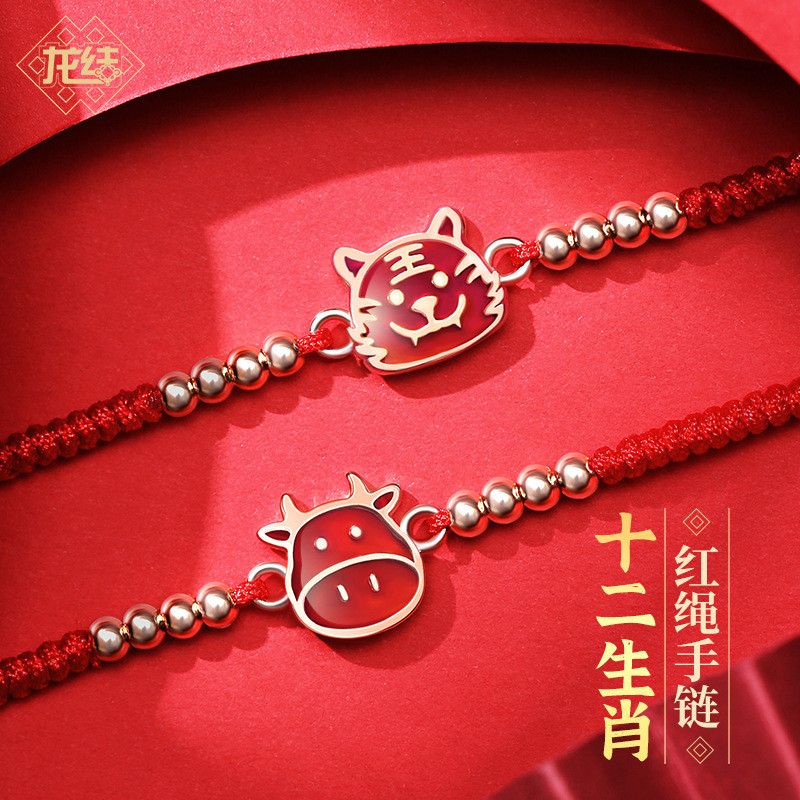 龙结新款国潮故宫十二生肖感温变色手链手工编织本命年红绳女手绳