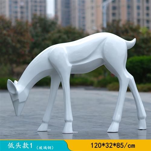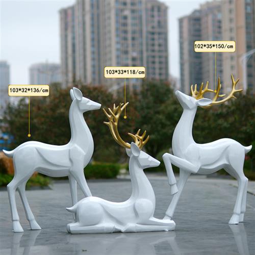 简约现代白色梅花鹿玻璃钢雕塑户外公园林景观房地产小区装饰摆件