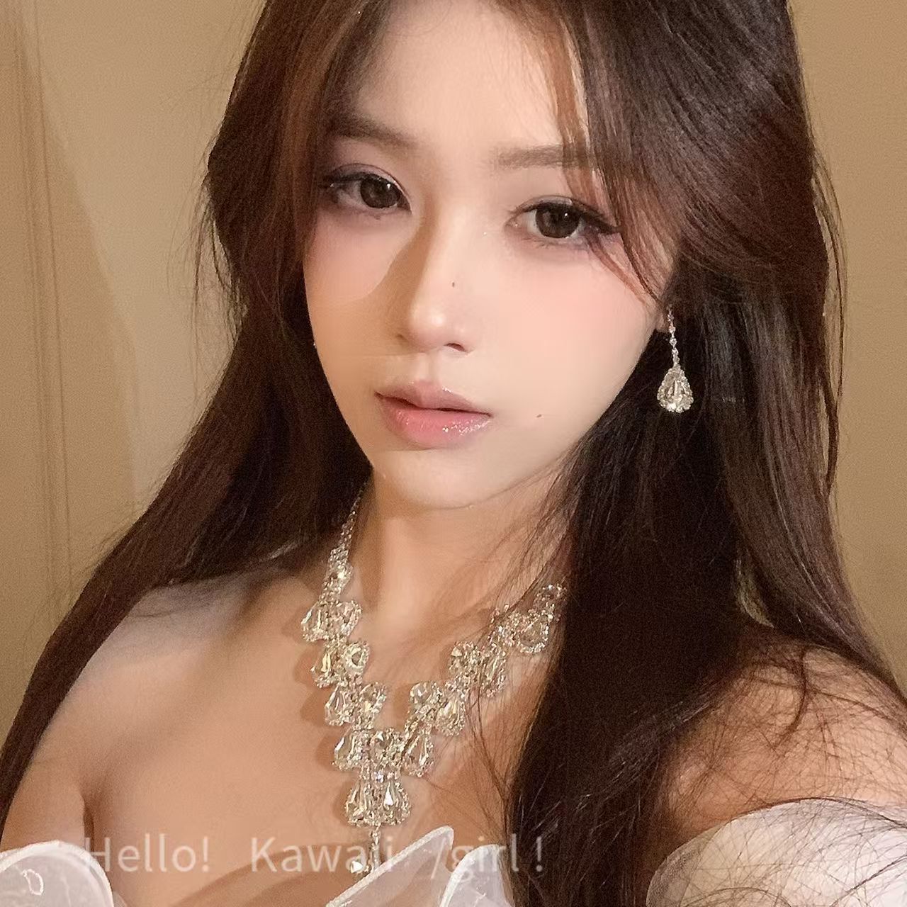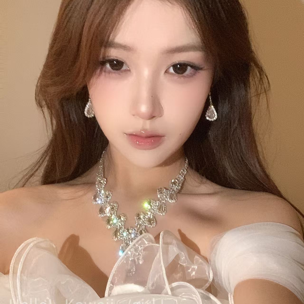 超闪满钻水滴项链耳环套装轻奢贵气感锁骨链新娘婚纱礼服宴会首饰