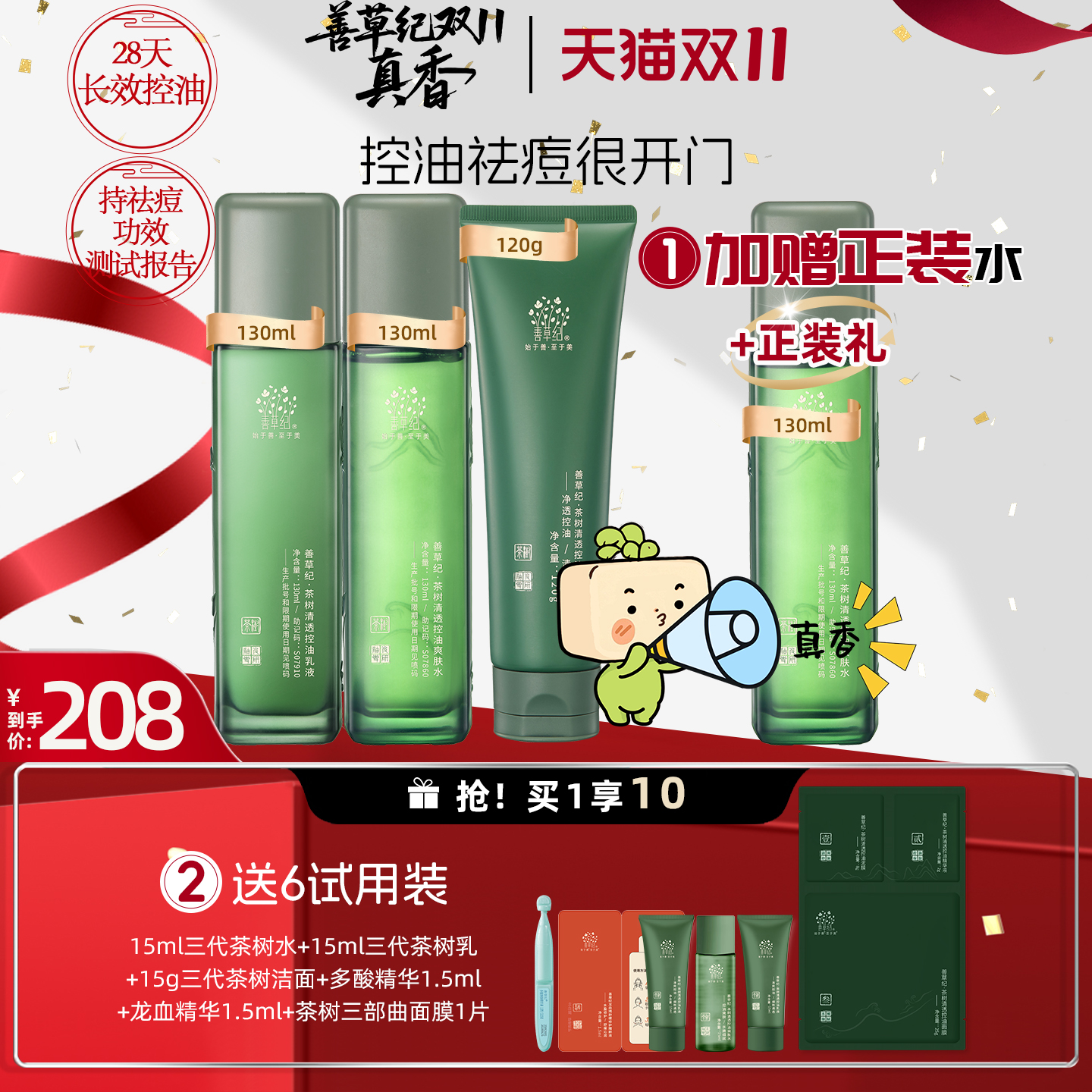 善草纪三代茶树祛痘水乳套装油痘肌补水保湿控油修护学生护肤品