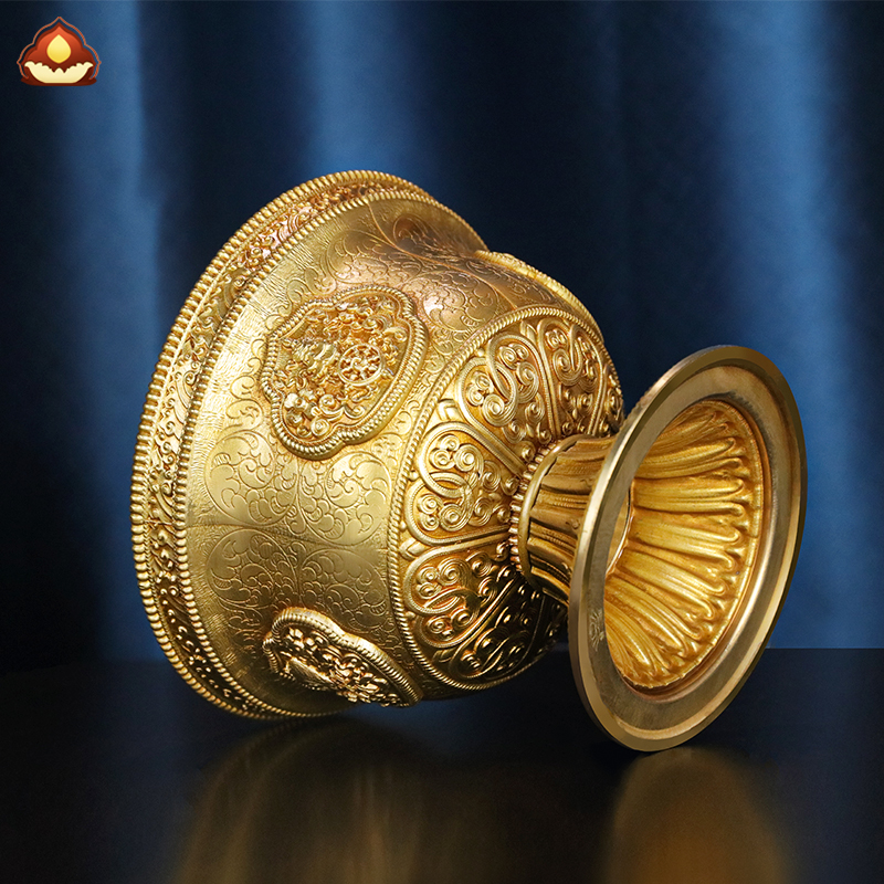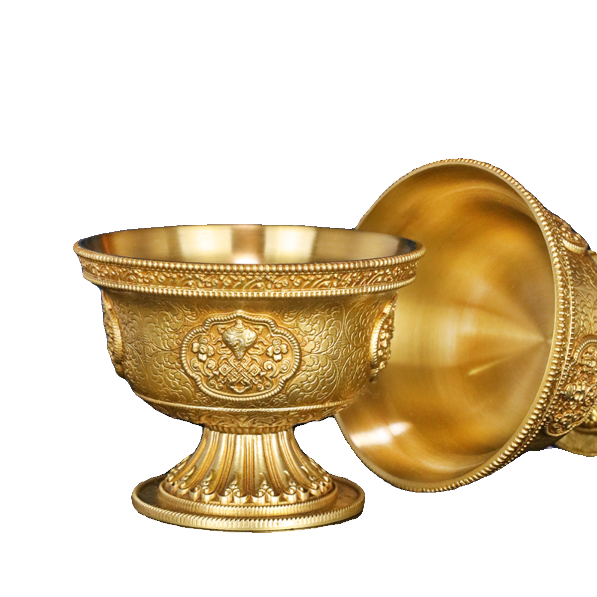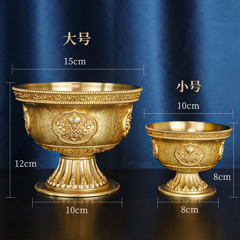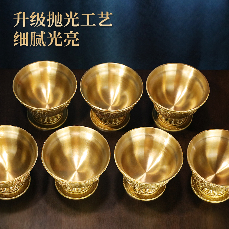 慧宝黄铜供水碗藏式八吉祥佛前八供碗大号供佛圣水茶酒杯密宗摆件