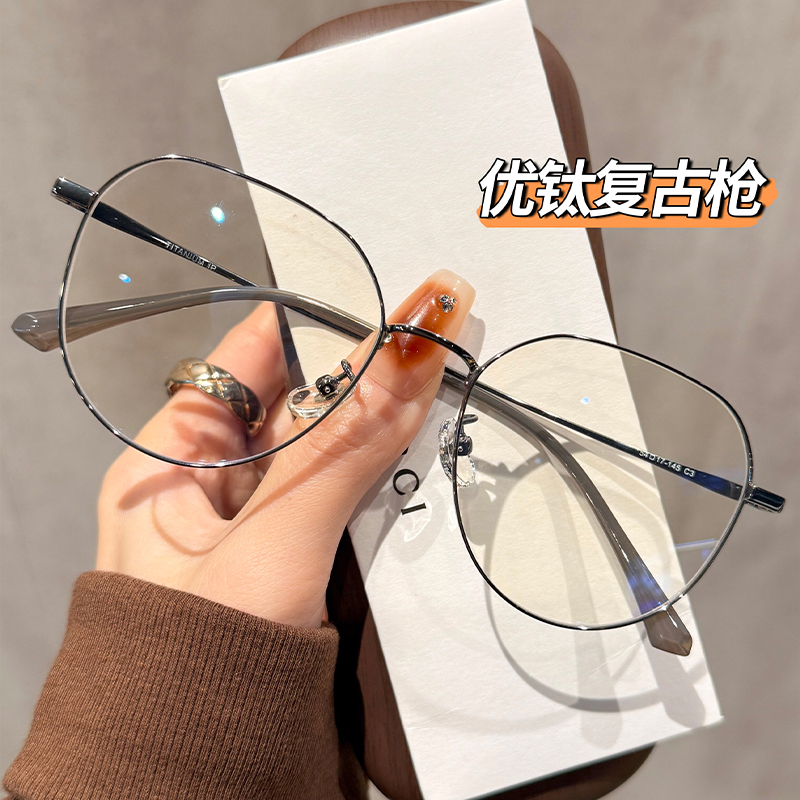 超轻钛架栗色方圆框眼镜女近视可配有度数大框显脸小素颜眼睛镜架