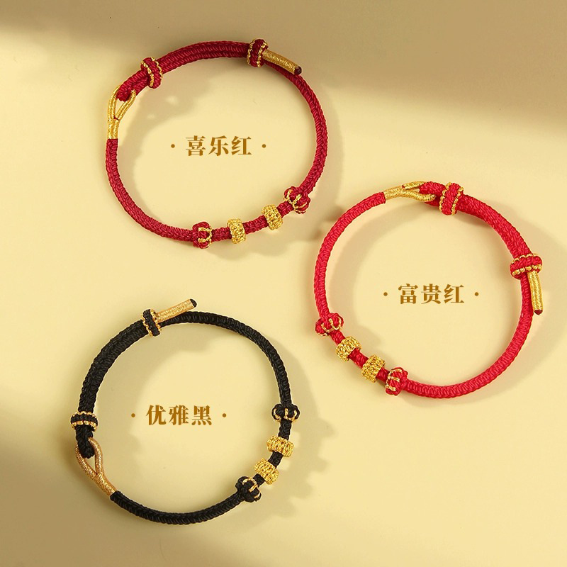 本命年diy手工编制红绳手绳女男半成品可穿黄金转运珠手链儿童款