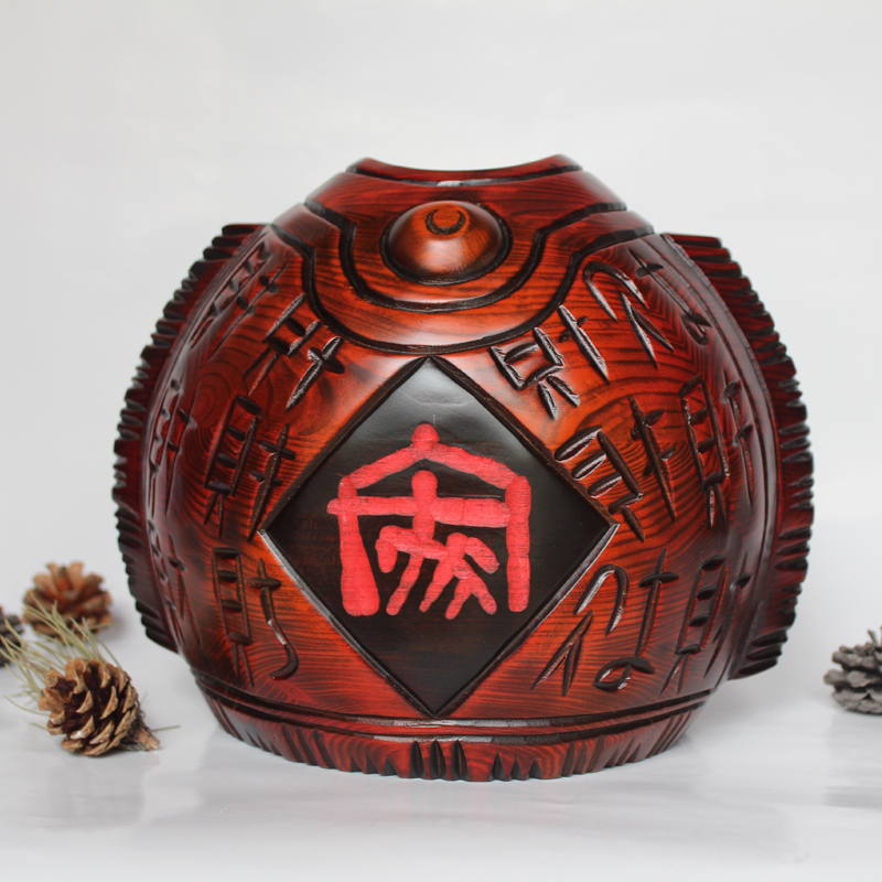 中式家居酒柜装饰品木质鱼储蓄罐创意实木招财存钱罐桌面玄关摆件