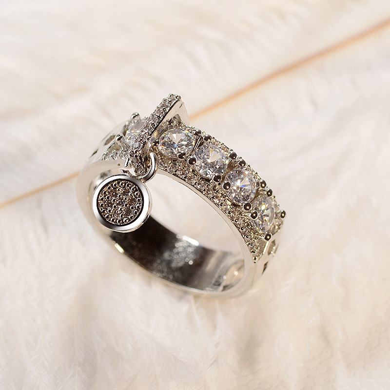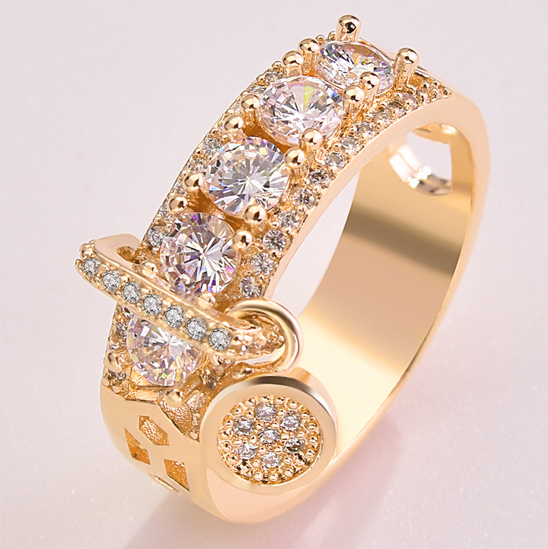 Young亚马逊wish爆款饰品欧美时尚创意锆石戒指女 镀真金圆盘戒指