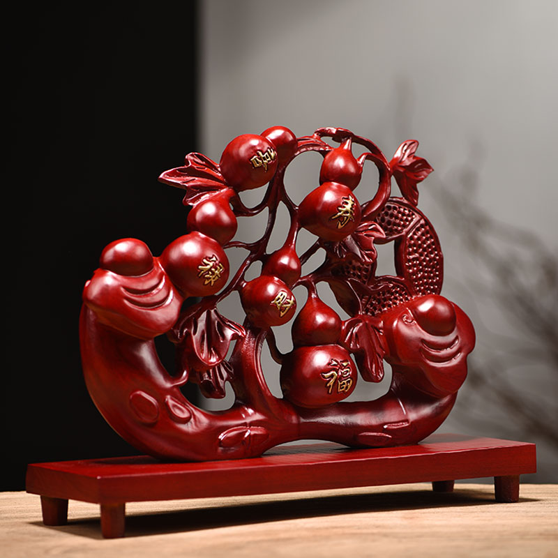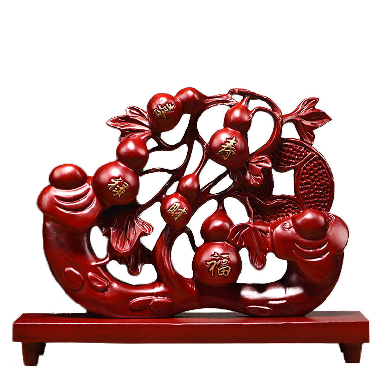 红花梨木雕葫芦摆件福禄实木质客厅乔迁开业送礼装饰雕刻红木工艺