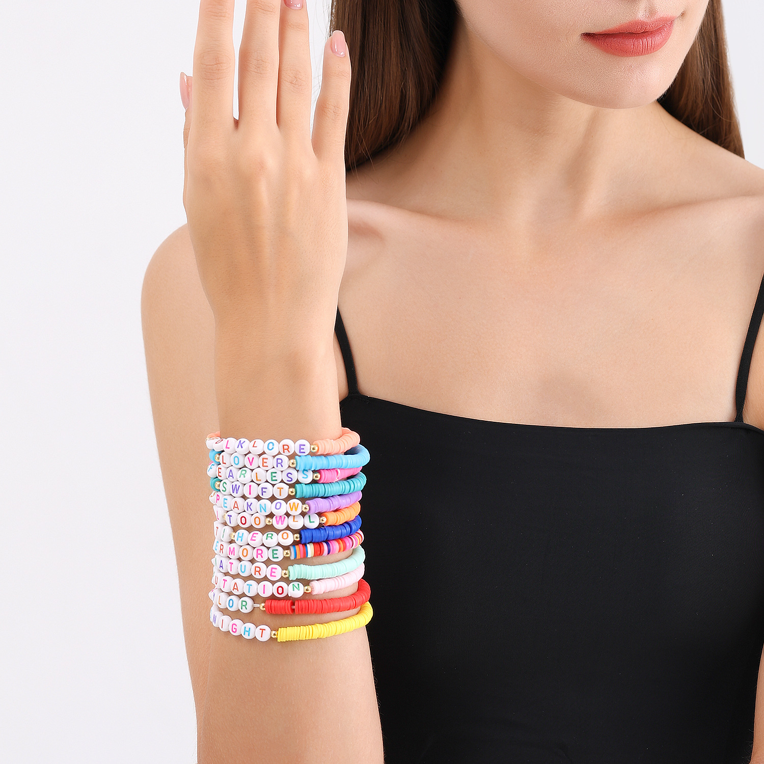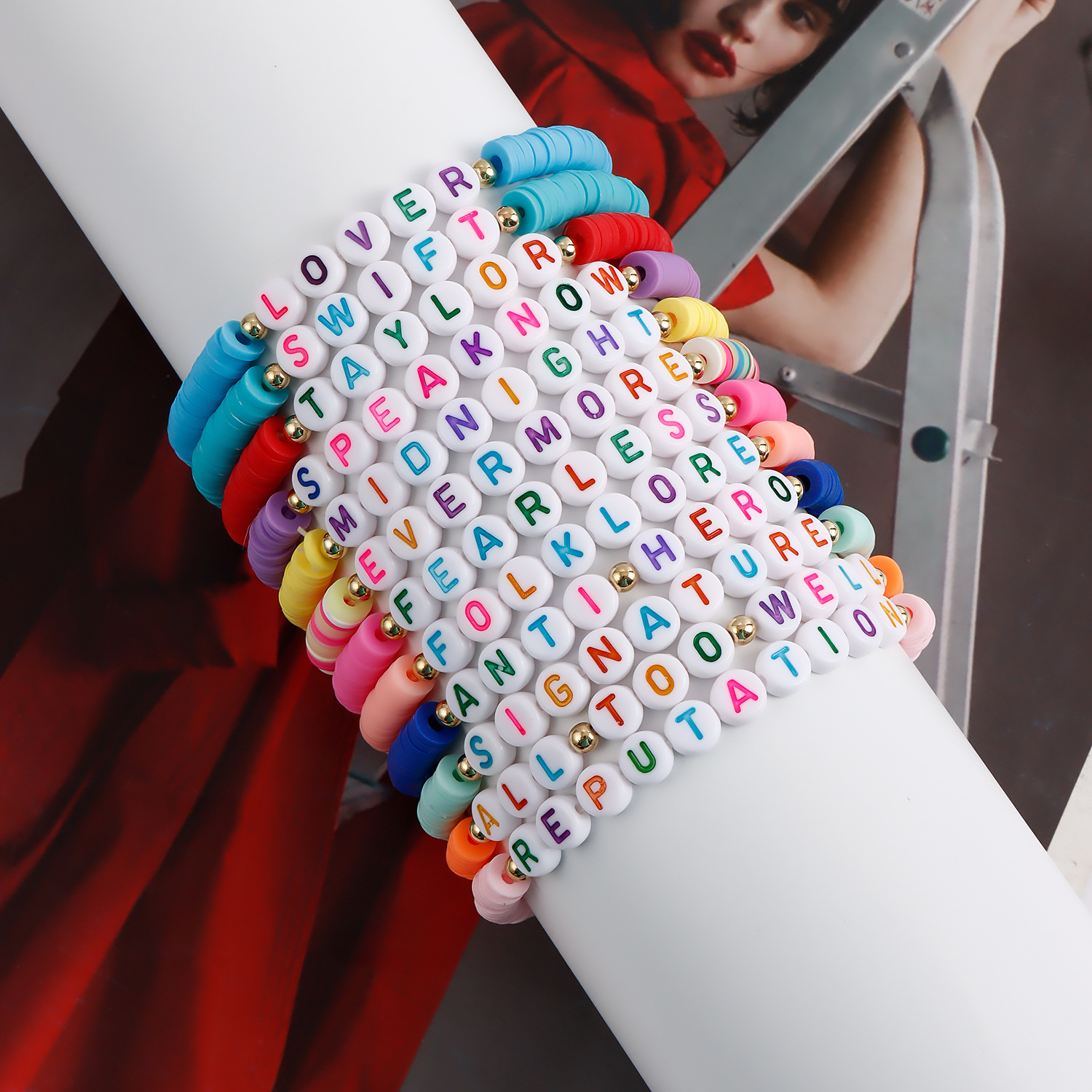 欧美外贸新款泰勒手链英文名字软陶手链波西米亚手链swiftie手链
