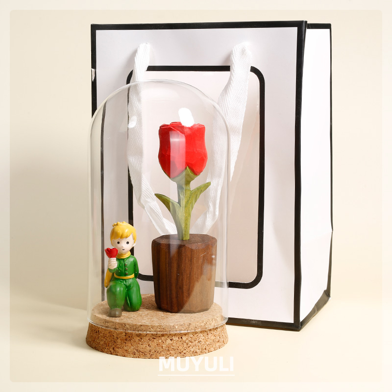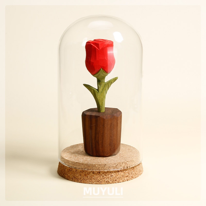 手工木雕玫瑰花丨小王子的玫瑰花永生花手工木雕桌面摆件中秋礼物