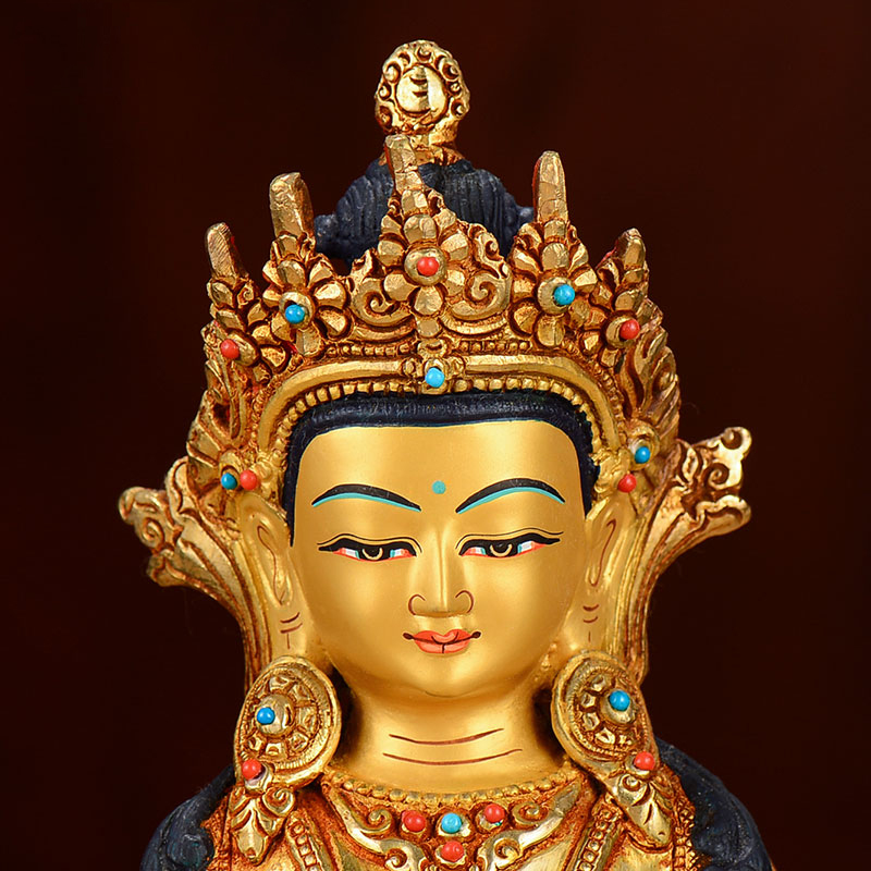 长寿铜像尼泊尔手工7寸铜鎏金家居摆件家用现代无量寿佛