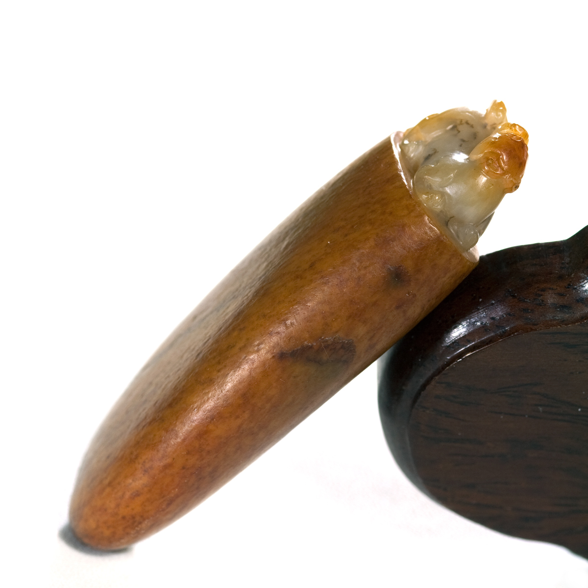 钰达和田玉籽玉貔貅把件 府上有龙手玩件皮色好白玉小摆件 59y