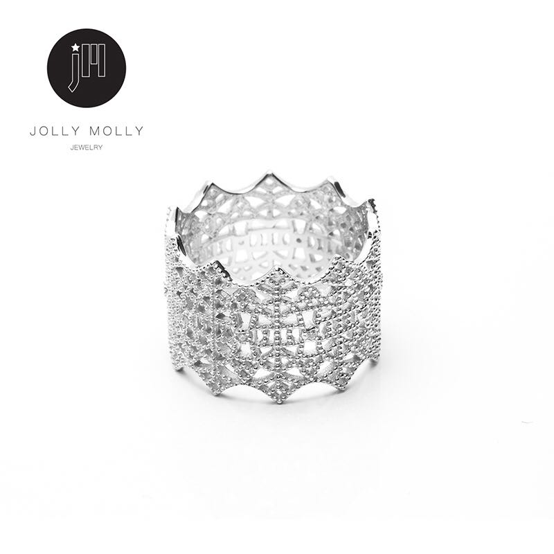 JollyMolly小众设计师网红chic蕾丝轻奢锆石925银重工戒指女礼物