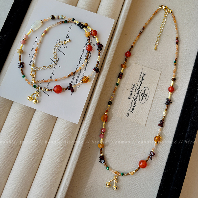 甜美樱桃吊坠串珠项链女款2025新款高级感轻奢小众配饰锁骨链颈链